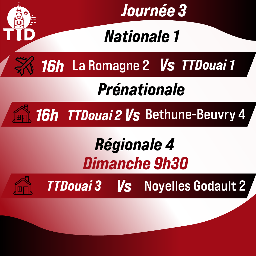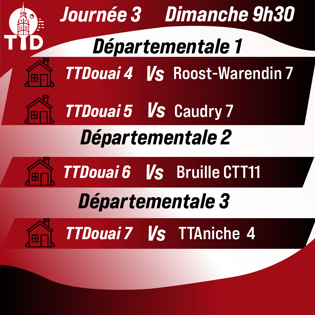 Création de visuels pour présenter la 3ᵉ journée du championnat par équipe sur les réseaux sociaux, en utilisant les couleurs du club pour renforcer son identité visuelle.